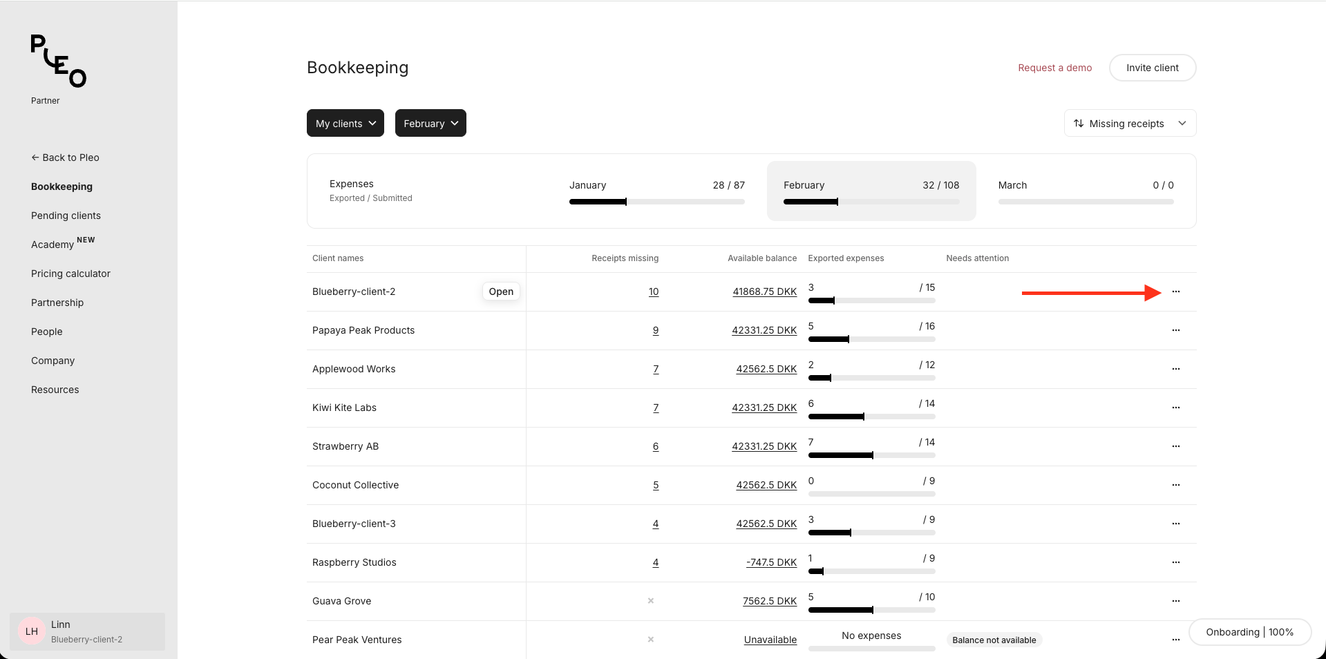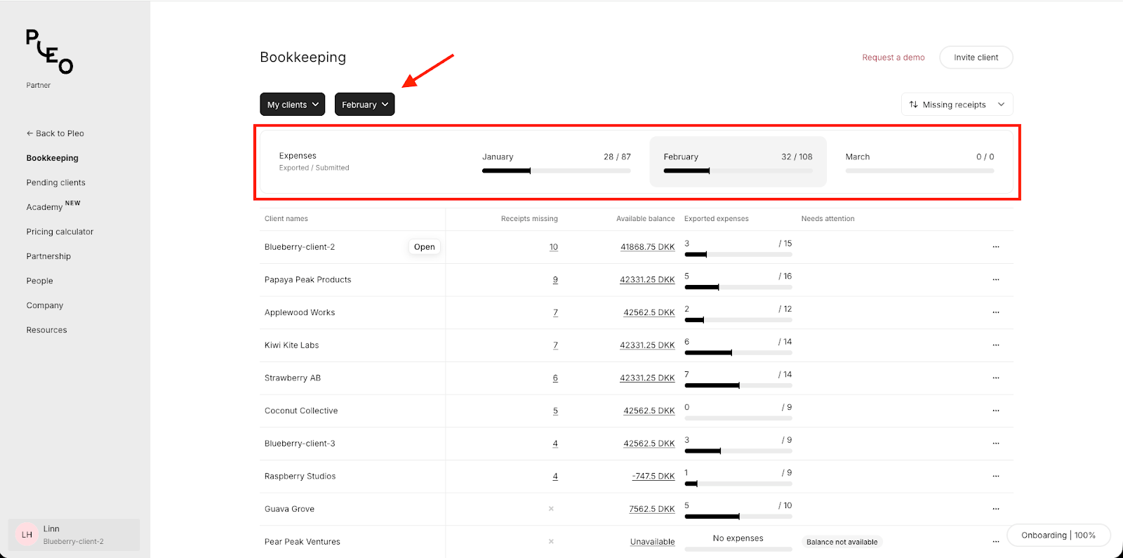 - Greifen Sie auf das Pleo-Konto von Mandanten zu
