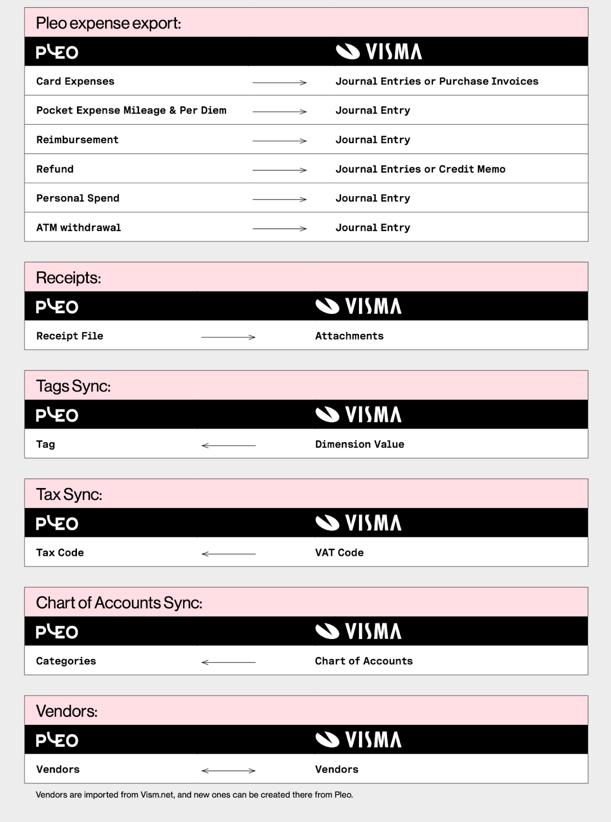 - Exported Pleo expenses can be booked on actual Vendors in Visma Net.